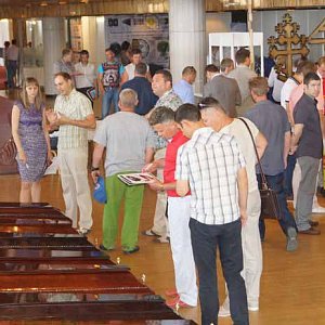 На стендах можно будет не только увидеть, но и купить лампады, литьё, венки, гробы всевозможных фактур и видов - от изделий из плотного картона до дорогих эксклюзивных моделей из ценных пород дерева, расписанные вручную под хохлому и гжель, станки для распила камня, все виды камнеобрабатывающих инструментов, косметические средства, урны для праха, термоклеевые пистолеты, принтеры для печати лент, цветники, надгробия, вазы, ритуальная одежда и обувь, литература.